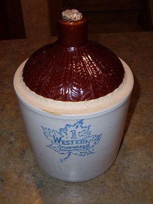 Antique primative Western Stoneware crock jug-Old cabin decor Moonshine jug