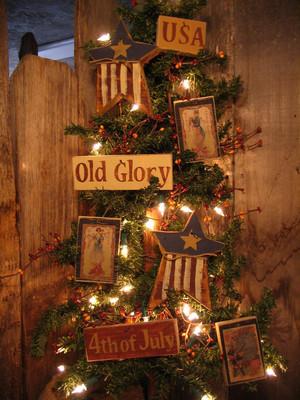 * 8 Primitive Vintage 4th July OLD GLORY STAR FLAG Americana Sign Ornies By HSC