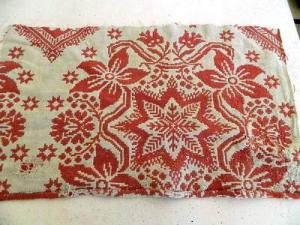 Antique Coverlet Blanket Piece - Cream & Rose Color