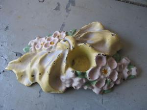 ANTIQUE CAST IRON EASTER YELLOW BOW CANDLE HOLDER PAT 12-22-24 LVL AUTHENTIC