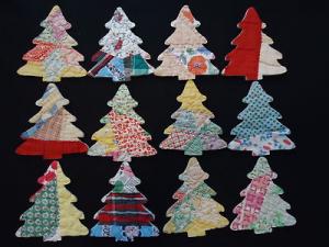 12 PRIMITIVE VTG CUTTER QUILT CHRISTMAS TREES - FOLK ART