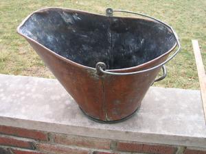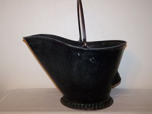 Antique Primitive Metal Ash Coal Bucket Scuttle with Bail & Tipping Handles