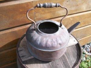 VINTAGE COPPER TEA POT -WALL DECOR FOR CABIN-LODGE-FARM HOUSE-INDIANA BARN FIND