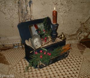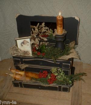 Primitive Wooden Box~Candle~Gathering~w/Drawer~Mirror~Circa Photo~Snuffer~Pip's