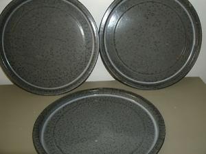 VINTAGE GREY GRANITEWARE PLATES - 3 -