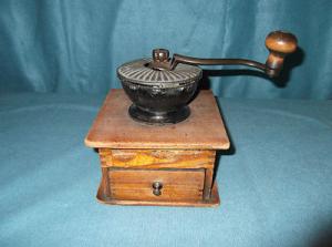 Antique Wood & Cast Iron Tabletop Coffee Grinder