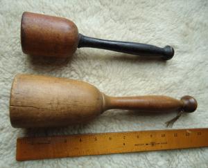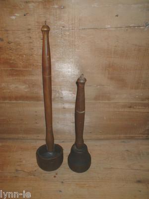 2 Early Wooden Mashers part of Collection of Treenware NR