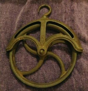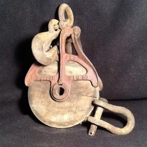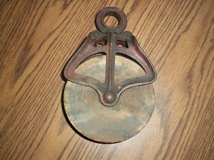 Antique Primitive Cast Iron & Wood Barn Hay Pulley