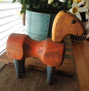 Old Primitive Wooden Toy Horse In Orginal Worn Paint