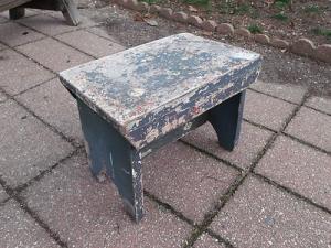 VINTAGE WOODEN PAINTED BENCH FOOT STOOL WOOD SHABBY OLD CABIN DECOR RUSTIC