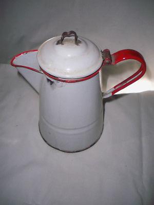 Old Antique Vintage Primitive Graniteware Enamelware Coffee Pot w/ Lid Grey Gray