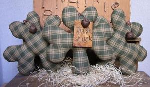 Primitive St Patricks Day Homespun Shamrocks Bowl Fillers Ornies