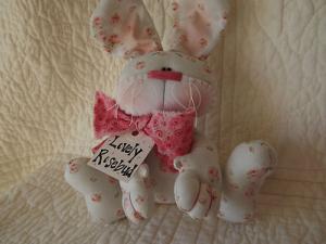 Primitive 'Lovely Rosebud' Bunny Rabbit Doll Made By a Patti's Ratties Pattern