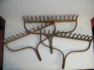 3 Vintage Primitive Old Garden Steel Rake Heads Wall Wine Glass Rack Yard Art
