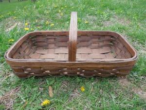 ANTIQUE PRIMITIVE RECTANGULAR GATHERING BASKET BREAD LARGE 20 X 11.5 X 4 SOLID
