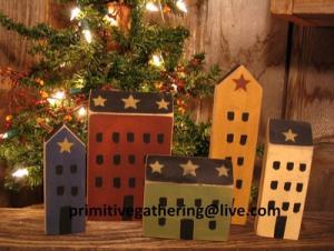 ★ 5 Primitive Handpainted Folk Art SALTBOX HOUSE Village Star Tuck By HSC OOAK