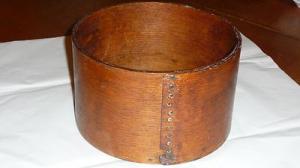 Antique Primitive Round Wooden 8.5" Cheese Box With Lid Tack Construction