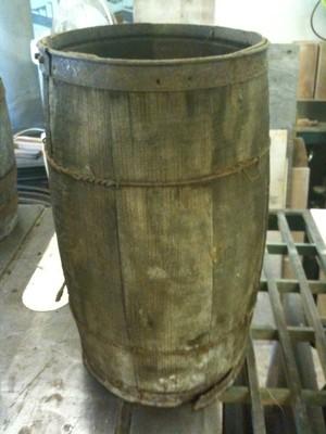 Antique wood nail keg barrel metail wire bands