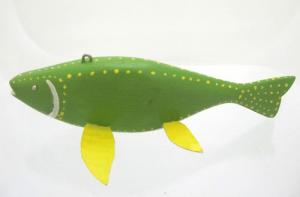 Vintage Green & Yellow Fishing Decoy w/ Nail Eyes / Alluminium Fins yqz