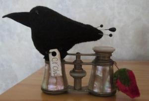 PRIMITIVE WOOL CROW BIRD ANTIQUE OPERA GLASSES MAKE DO PIN CUSHION PFATT MOP