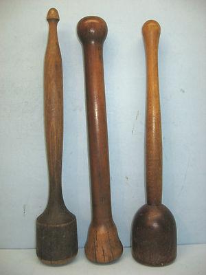 Lot of 3 Antique Wooden Beetles/Potato Mashers, Treenware