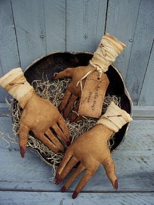 Primitive GNARLY OLD WITCH HANDS Halloween Bowl Fillers Tuck Aways