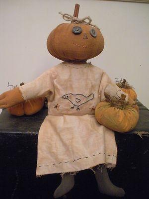 Primitive Fall Autumn Halloween Decoration Pumpkin Doll