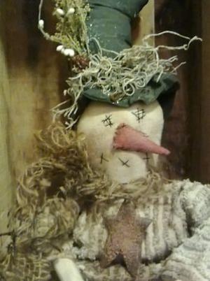 PRIMITIVE GRUNGY FOLK ART SNOWMAN STUMP TUCK SHELF SITTER STOVE PIPE HAT* DOLL