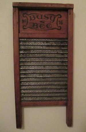 Antique Primitive Busy Bee Number 16 Metal and Wood Laundry Scrub Washboard