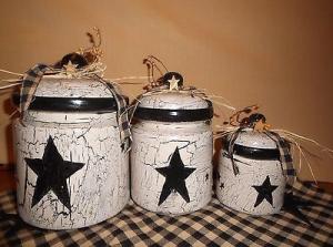 Primitive Country Craclkle Decor (3 Canister Set) Americana Stars