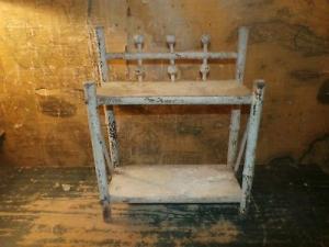 Vintage Antique Primitive Folk Art Bamboo Cane Double Shelf Stand