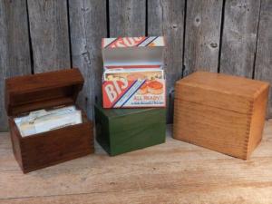 4 Old Vintage Kitchen Recipe File Box Lot Wood & Metal with Recipes