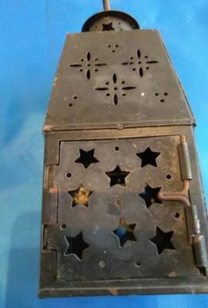 ANTIQUE PIERCED TIN MINIATURE BLACK CANDLE LANTERN