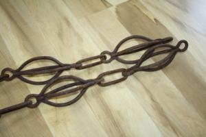 ANTIQUE UNUSUAL WROUGHT IRON HOOK & LINK 2 X 45" METAL RUSTY OLD PRIMITIVE