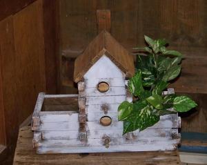Primitive Lg Vintage Wood Bird House with Side Planters Handcrafted in Maine