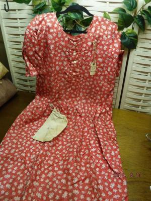 primitive prairie cabin pioneer everyday dress medium red cotton seed bag