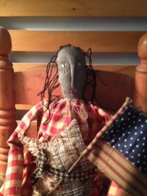 Primitive FolkArt Handmade Raggedy Doll with Flag