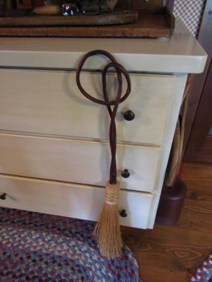 Old Primitive SHAKER? Whisk Broom with Green Velvet Cloth Top American Find AAFA
