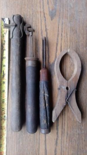 vintage cross cut saw handles and oak clamp antique hand tools collectibles