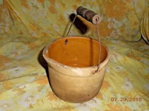 AAFA ANTIQUE SMALL REDWARE POURING POT WITH ORIGINAL BAIL HANDLE