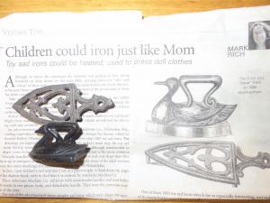 VICTORIAN 1885 CHILD''S TOY FIGURAL DUCK CAST IRON SAD IRON & TRIVET ORIGINAL OLD