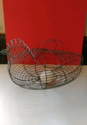 Vintage French Traditional Wire Egg Basket with handle - EXC