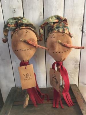 Primitive Snowman Doll Folk Art Doll Christmas Doll Real Dried Carrot BIG Pokes