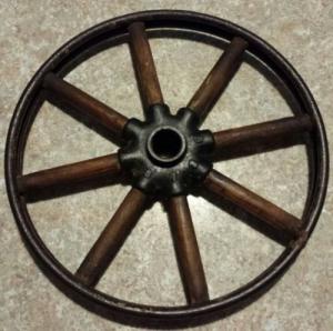 VINTAGE PRIMITIVE 10 1/2" X 1" WOOD WAGON WHEEL 8 SPOKE CAST IRON RIM FALL DECOR