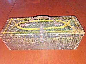 Antique Primitive Small Splint Basket Hinged W/Double Handles