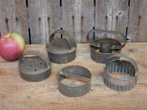 5 Rare Antique Primitive Old Tin Biscuit Cutters Collection Farm Kitchen AAFA