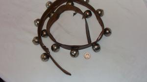 15 Christmas sleigh bells on 46" faux leather strap (item CH6)