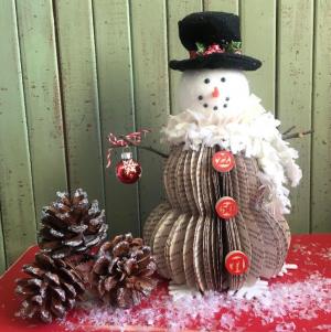 Primitive HANDMADE SNOWMAN from OLD BOOK~Winter~Farmhouse Christmas Decor