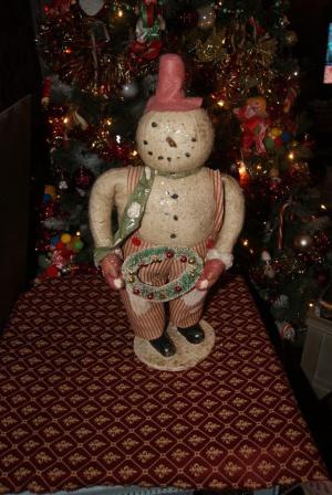 FoLk Art PrimiTive WinTer ChrisTmas SNOWMAN Tree Topper DOLL Cupboard DecoraTion