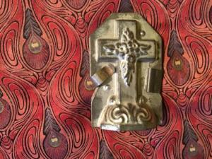 Vtg Antique Chocolate Candy Metal Tin Mold Easter Religious HOLY CROSS